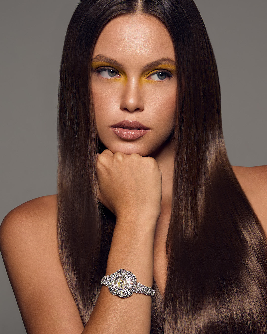 Each petal and diamond is meticulously placed, resulting in a stunning and unique piece that is sure to turn heads. These intricately designed petals create a mesmerizing three-dimensional effect, truly setting this timepiece apart. Like glistening drops of dew on a summer morning, brilliant diamonds elegantly punctuate the diamond bezel surround, adding a touch of charm and romance to this watch.