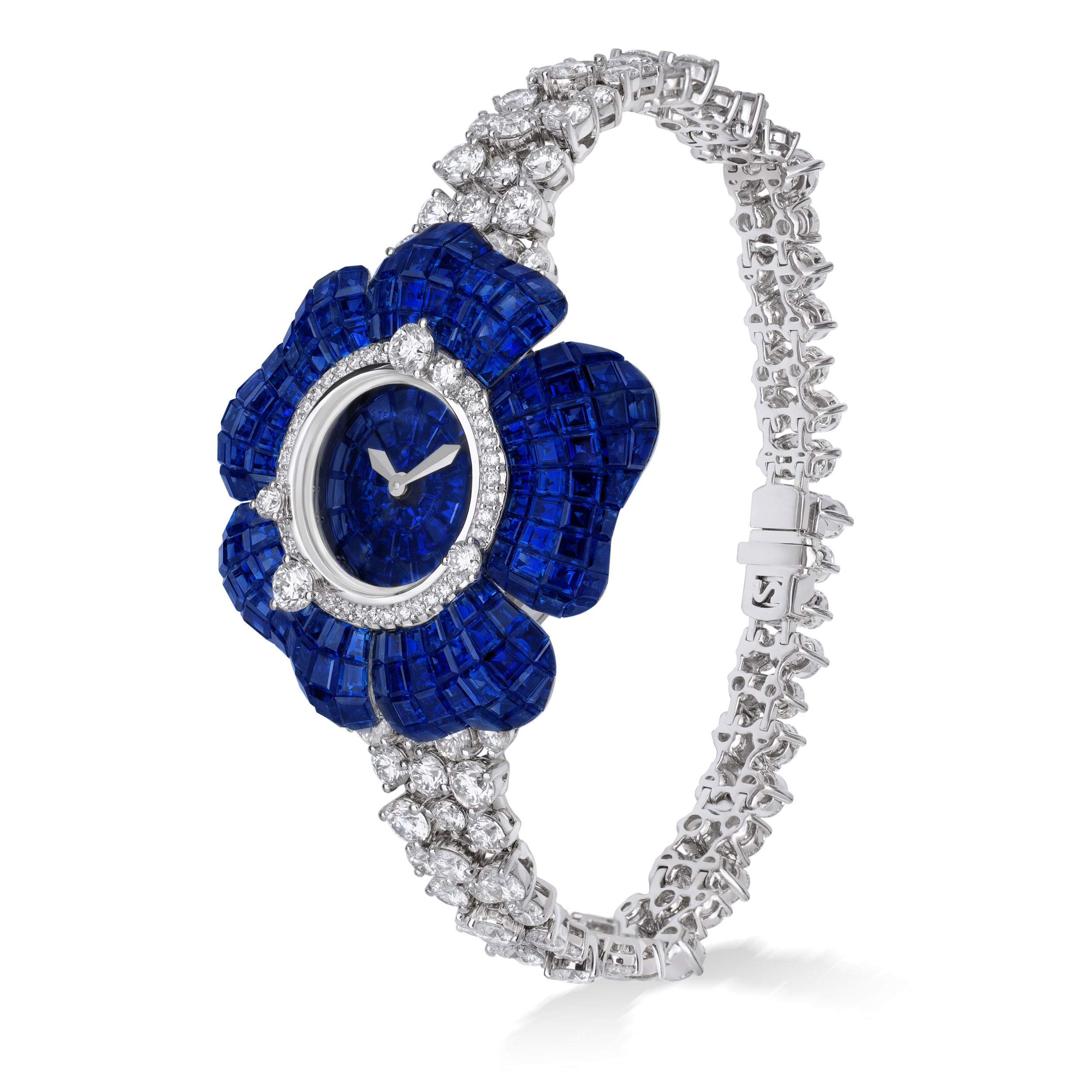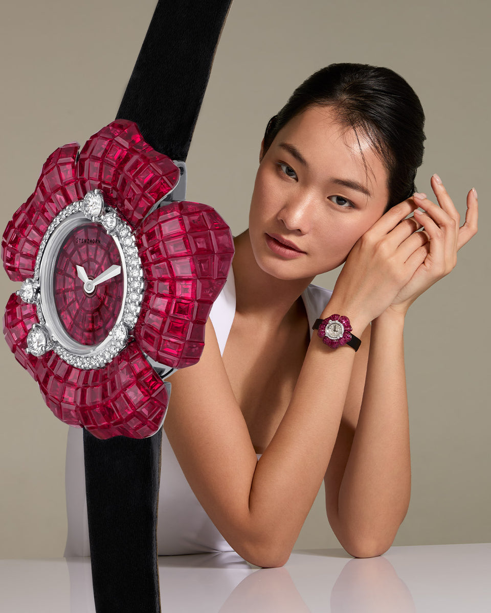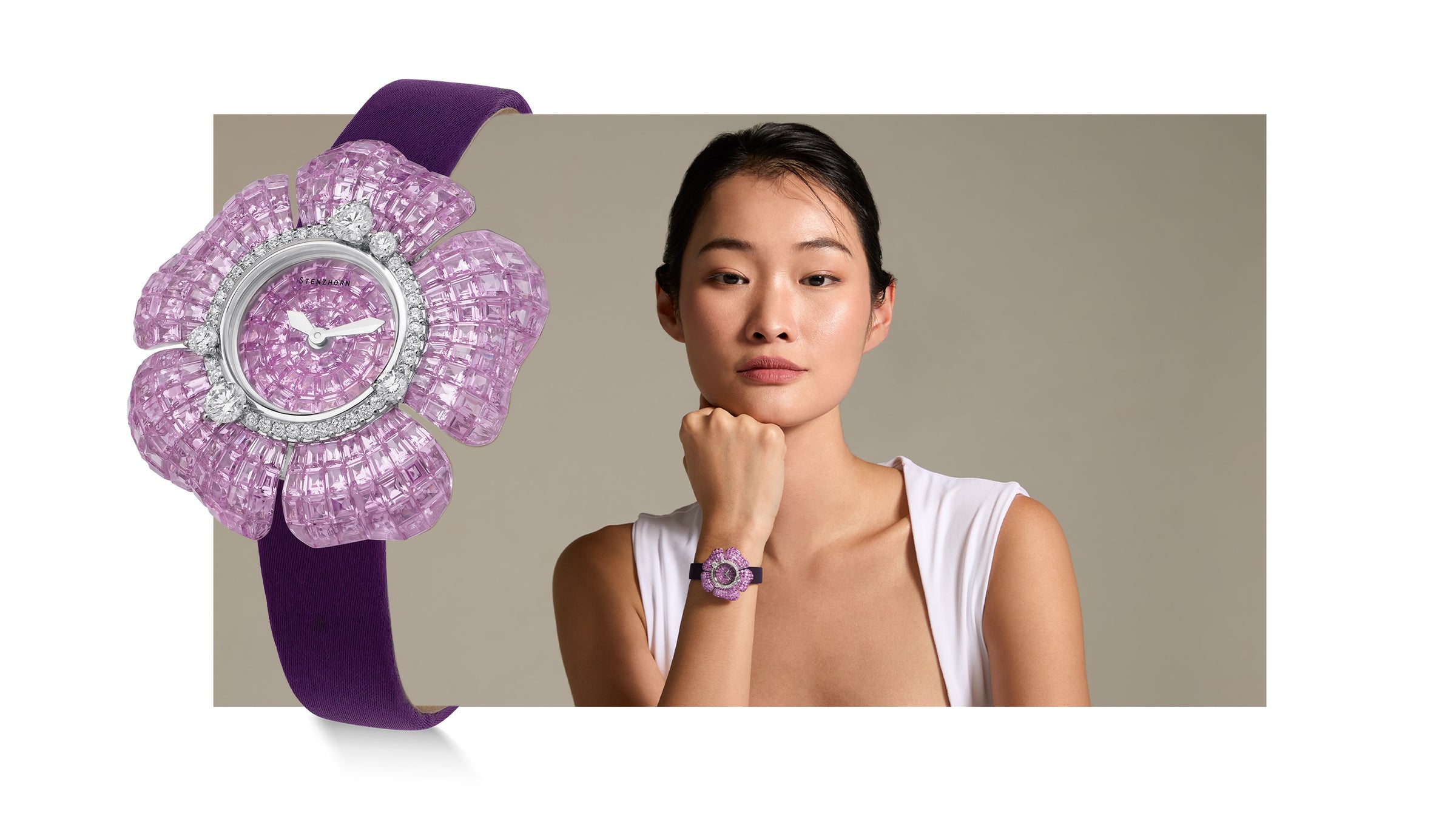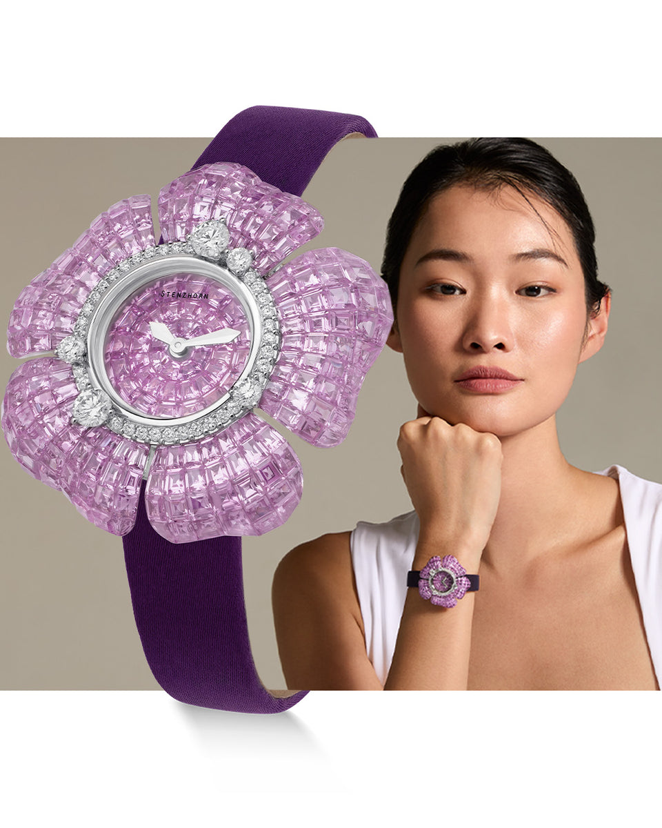 Introducing the Floral Watch, where flawlessly crafted petals reveal nature's treasure in the most enchanting way. This watch perfectly blends Stenzhorn's iconic gem-laden blooms and exquisite craftsmanship. Inspired by the renowned Floral collections, the Floral watch takes beauty to new heights with its soft, invisibly set rubies, precious sapphire petals, and sparkling diamonds.