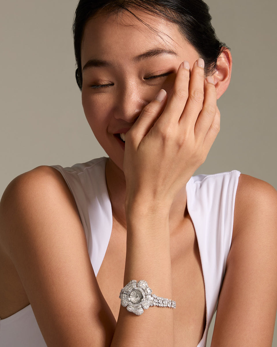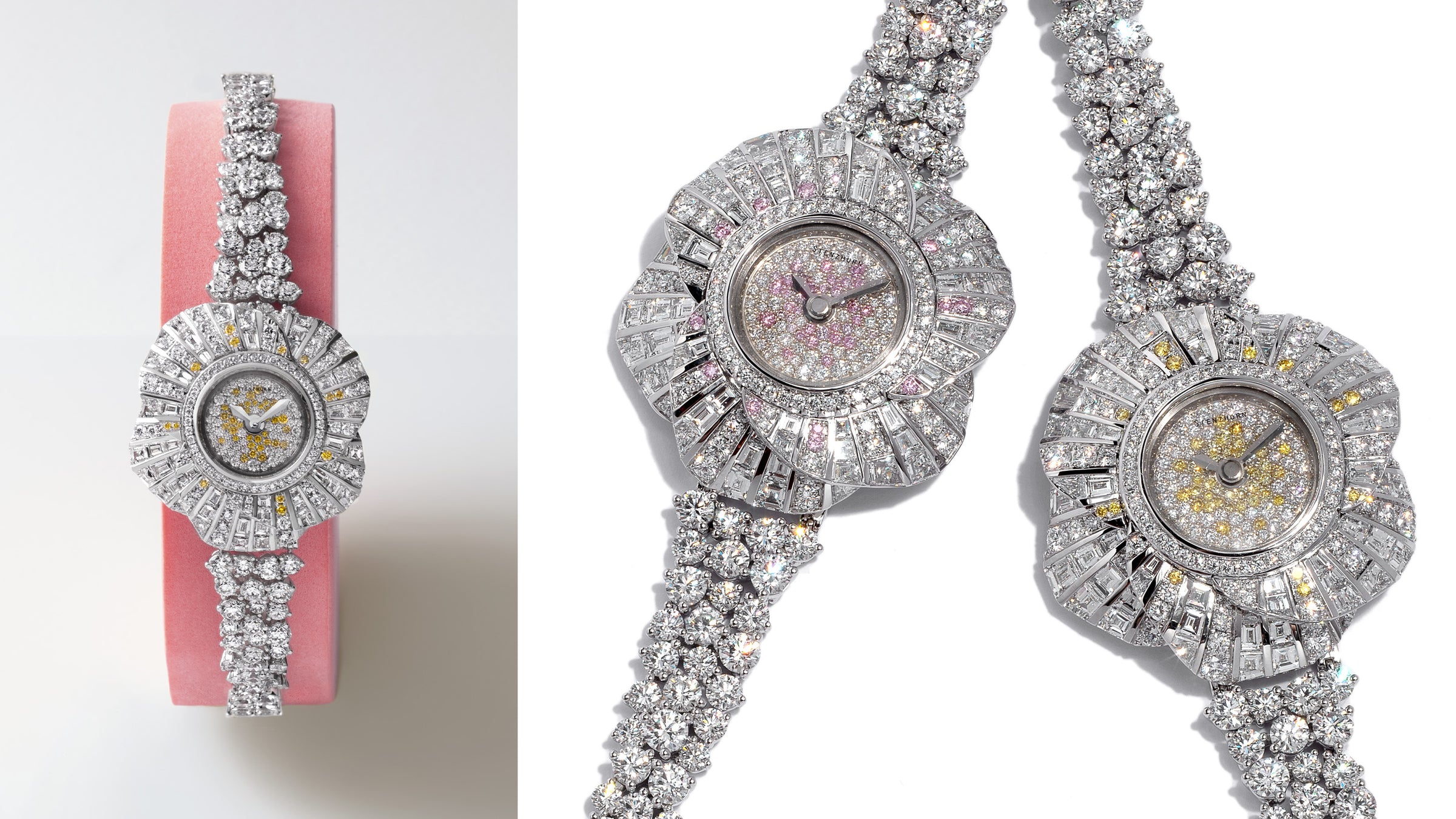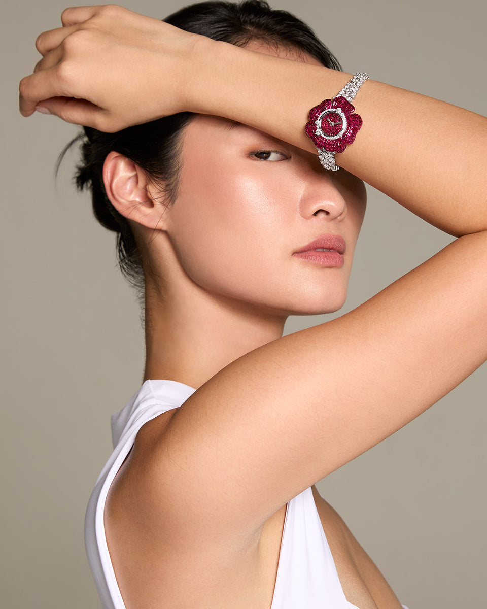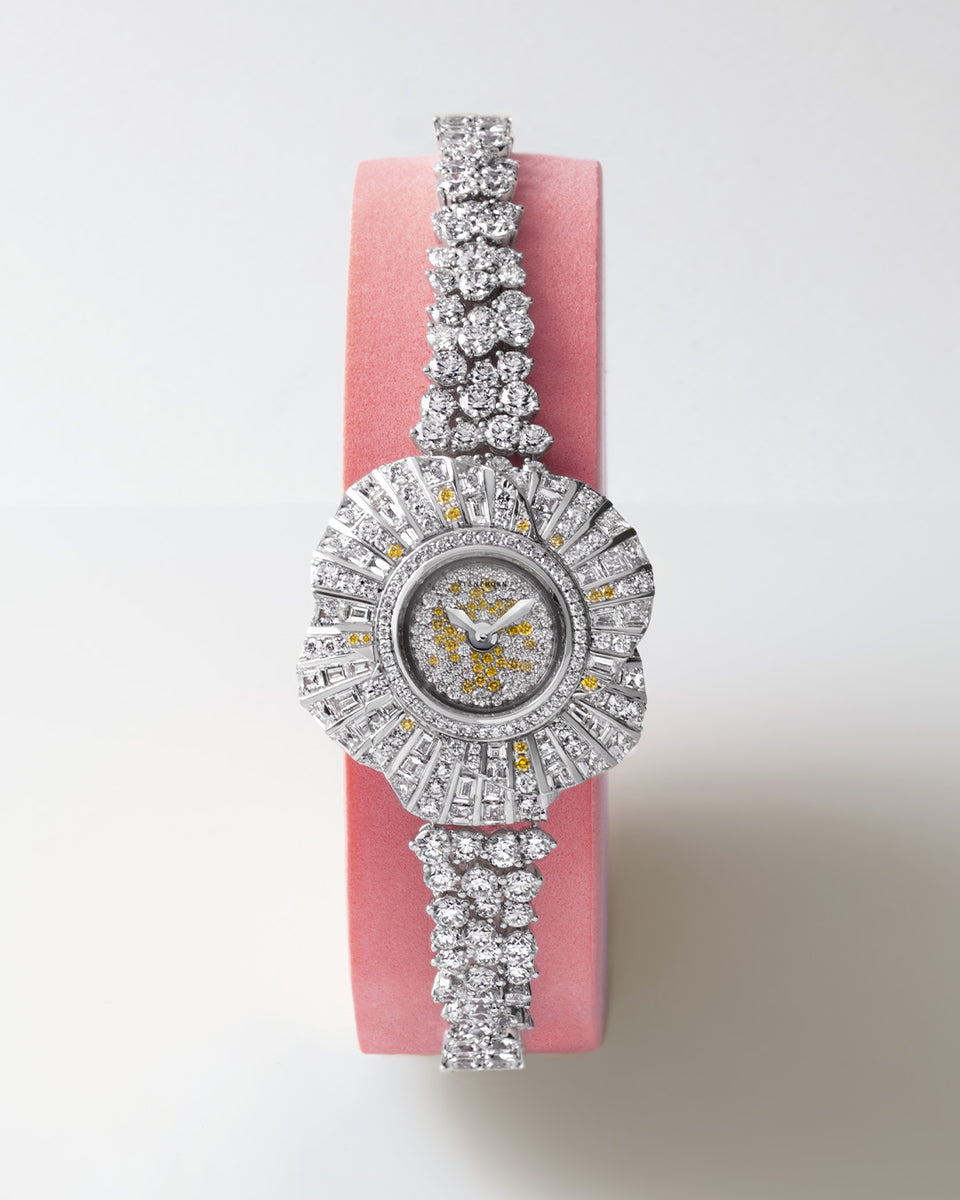 Each petal and diamond is meticulously placed, resulting in a stunning and unique piece that is sure to turn heads. These intricately designed petals create a mesmerizing three-dimensional effect, truly setting this timepiece apart. Like glistening drops of dew on a summer morning, brilliant diamonds elegantly punctuate the diamond bezel surround, adding a touch of charm and romance to this watch.