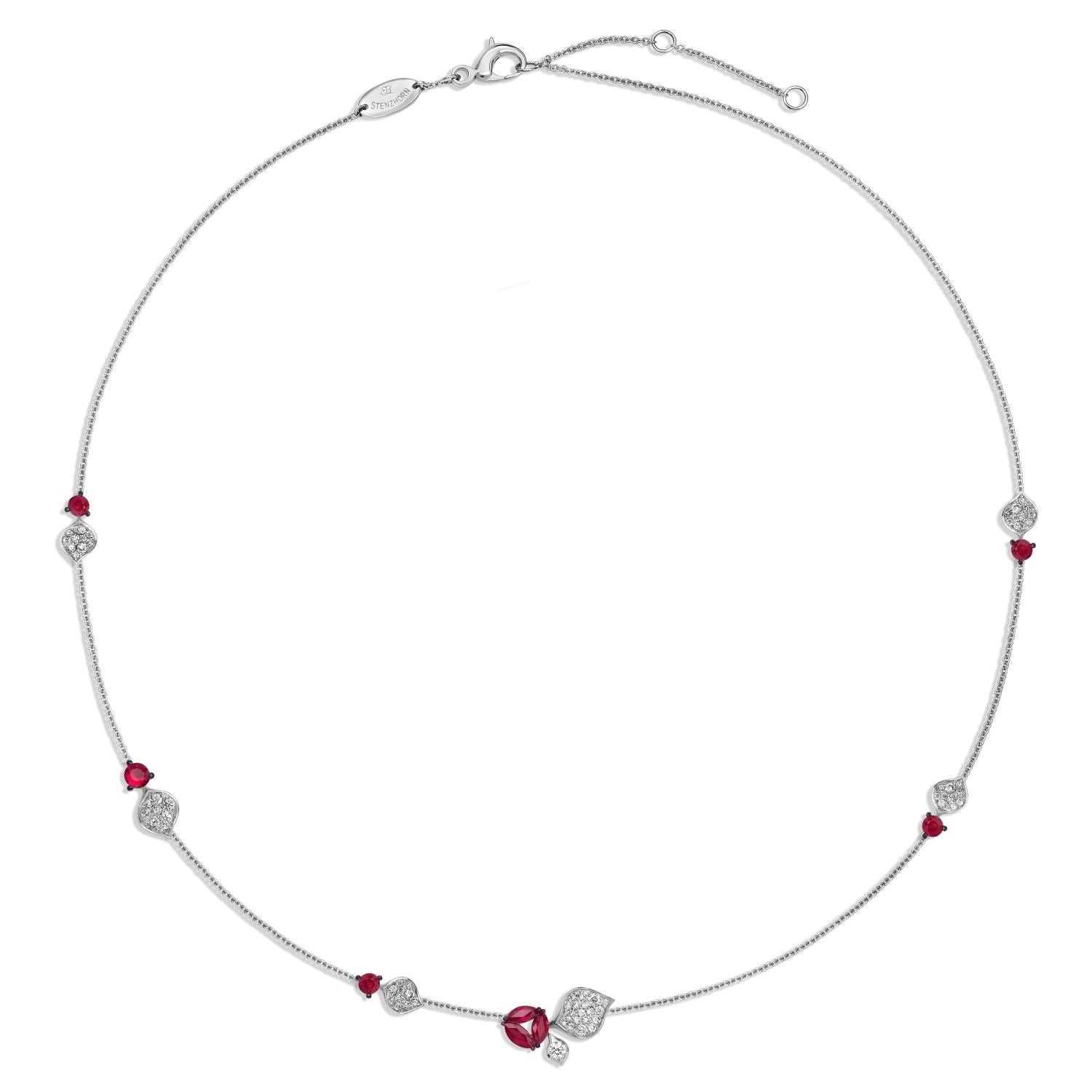 The À Fleur de Paris Necklace is a delicate and versatile piece, designed to reflect the beauty of blooming petals. Crafted in 18k gold, the necklace features a harmonious arrangement of pavé-set diamond petals and vibrant marquise-cut rubies, bringing a touch of color and sparkle to your look. With the ability to be worn at three different lengths, this necklace offers flexibility to perfectly complement any neckline or outfit.