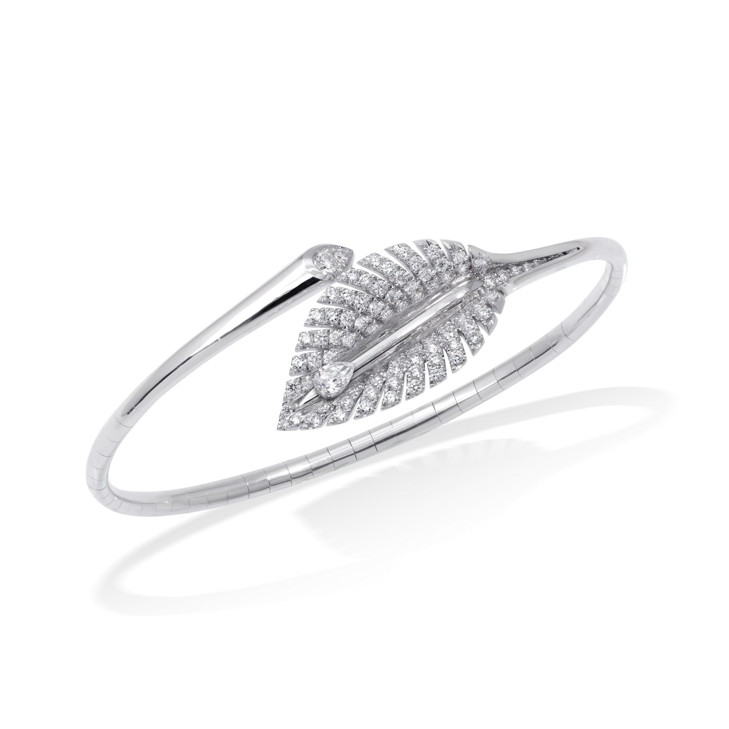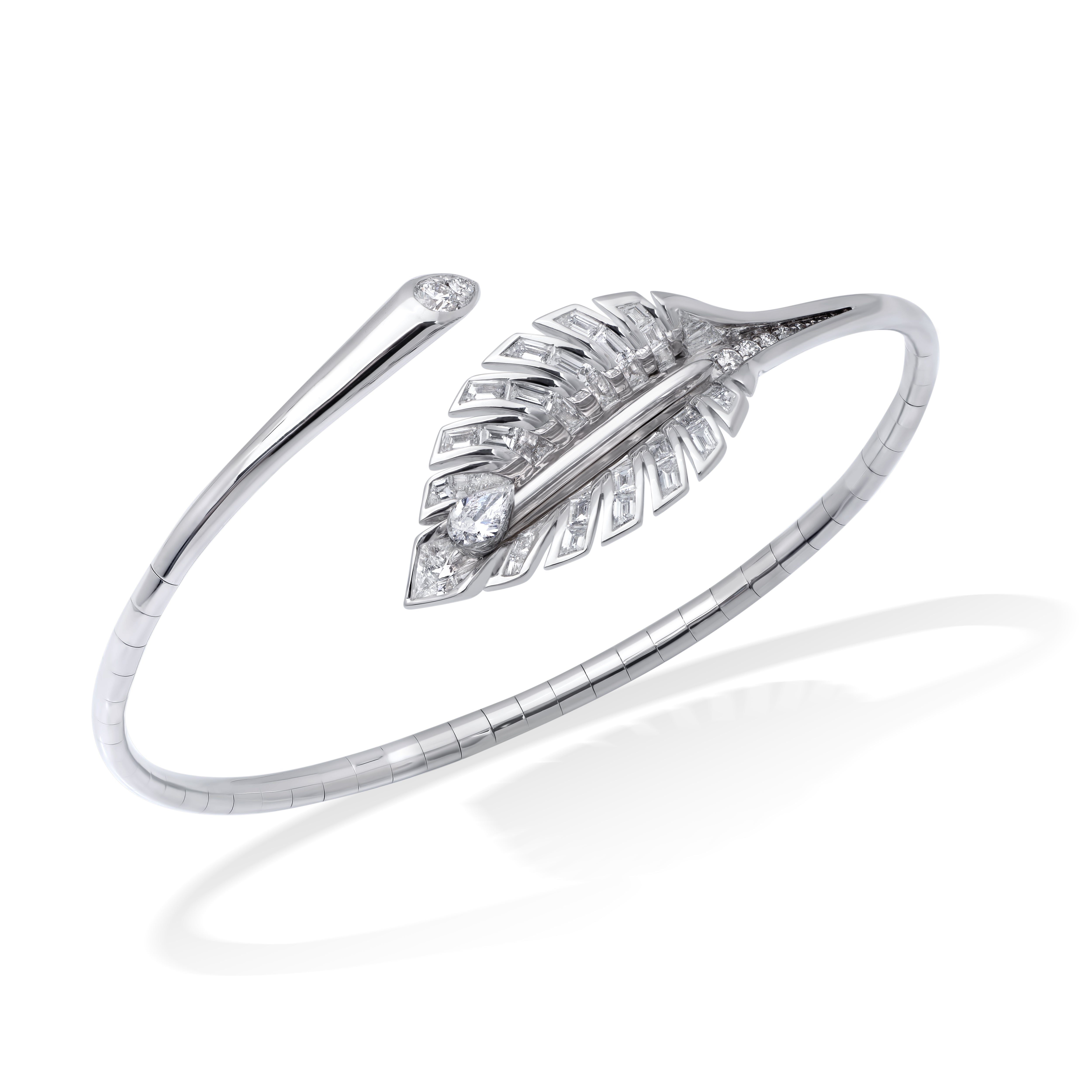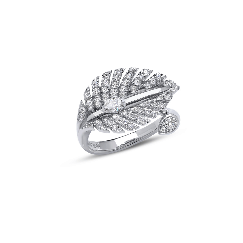 Specially designed to cool you down for any occasion, an invisible set of pear-shaped diamonds is cut to move you, like the trickle of tiny water bubbles, down a leaf. The designs of this collection are inspired by the beautiful foliage of Hastas, a family of plantain lilies native to Japan, Korea, and China. Hosta plants symbolise friendship and devotion.