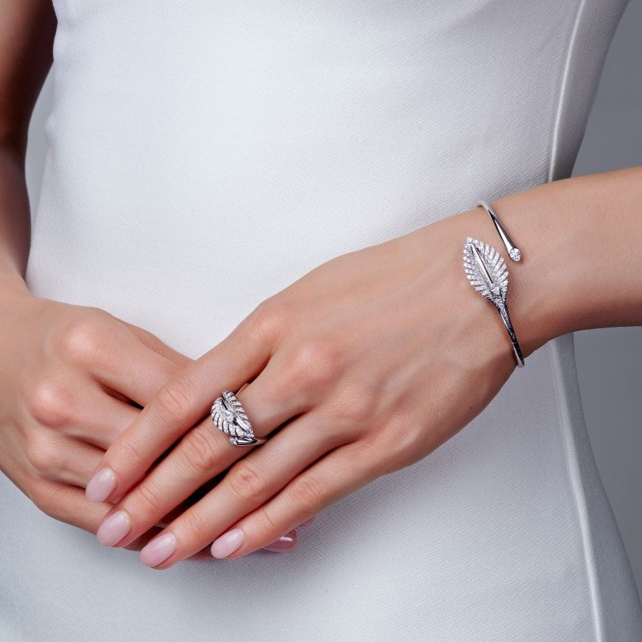 The Dewdrop collection, with its playful movement and unique, dynamic look, is designed to empower you. The invisible set, moving diamond reflects the sun just like dewdrops in the early morning, adding a touch of versatility to your style. The collection contains pendants, bangles, and rings that can be worn alone or in combination, allowing you to express your unique personality and brighten your day with sparkling jewels that dance in your mind.