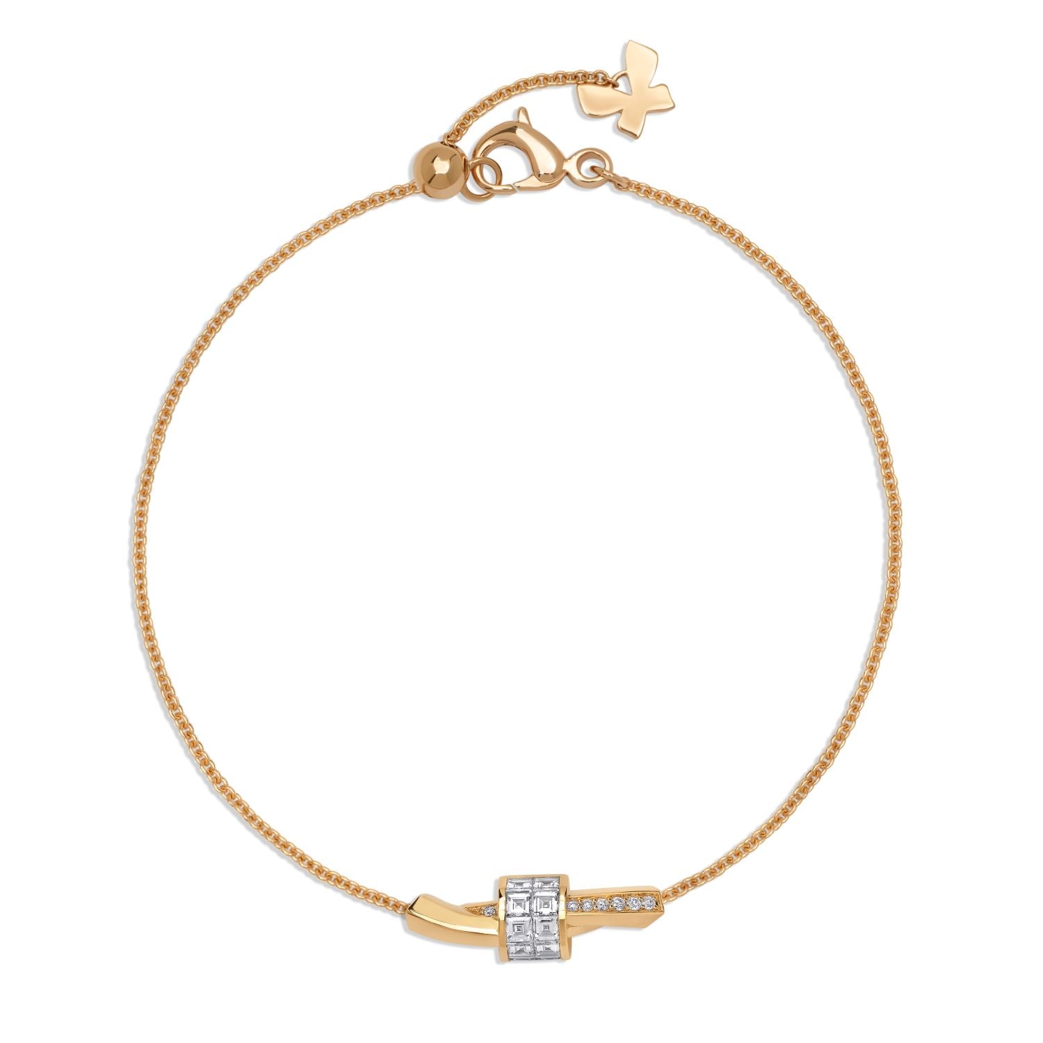 コンテンポラリーなエレガンスと実用的なデザインが融合した18Kイエローゴールドのブレスレット。中央の結び目には、ステンツォーンのシグネチャーであるインビジブル・セッティング・ダイヤモンドが2列あしらわれ、力強さとつながりを象徴する輝きを放っています。結び目から優雅に伸びる2本のロープの端には、ラウンド・ダイヤモンドとポリッシュ・ゴールドのアクセントが施され、完璧なテクスチャーのバランスを生み出しています。
