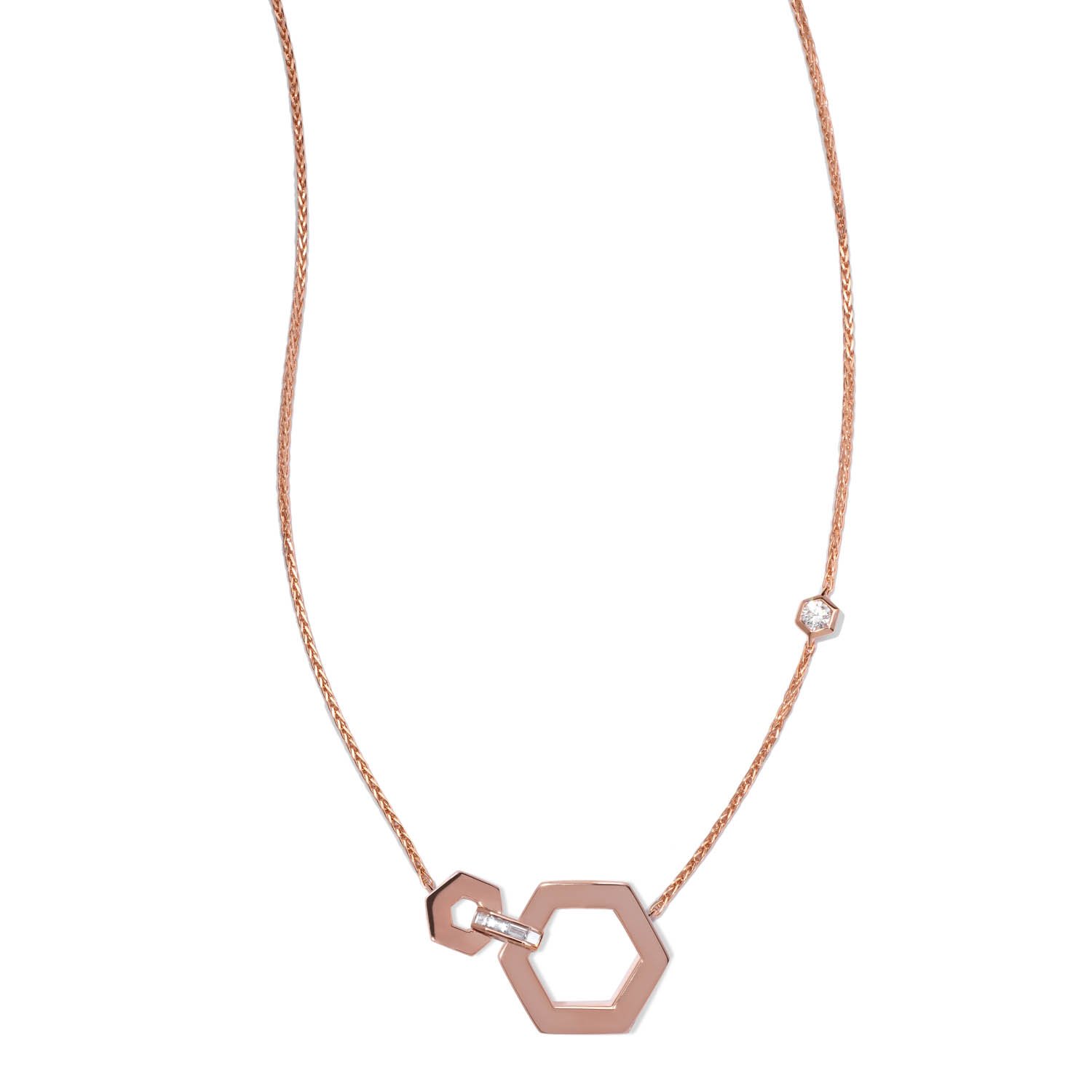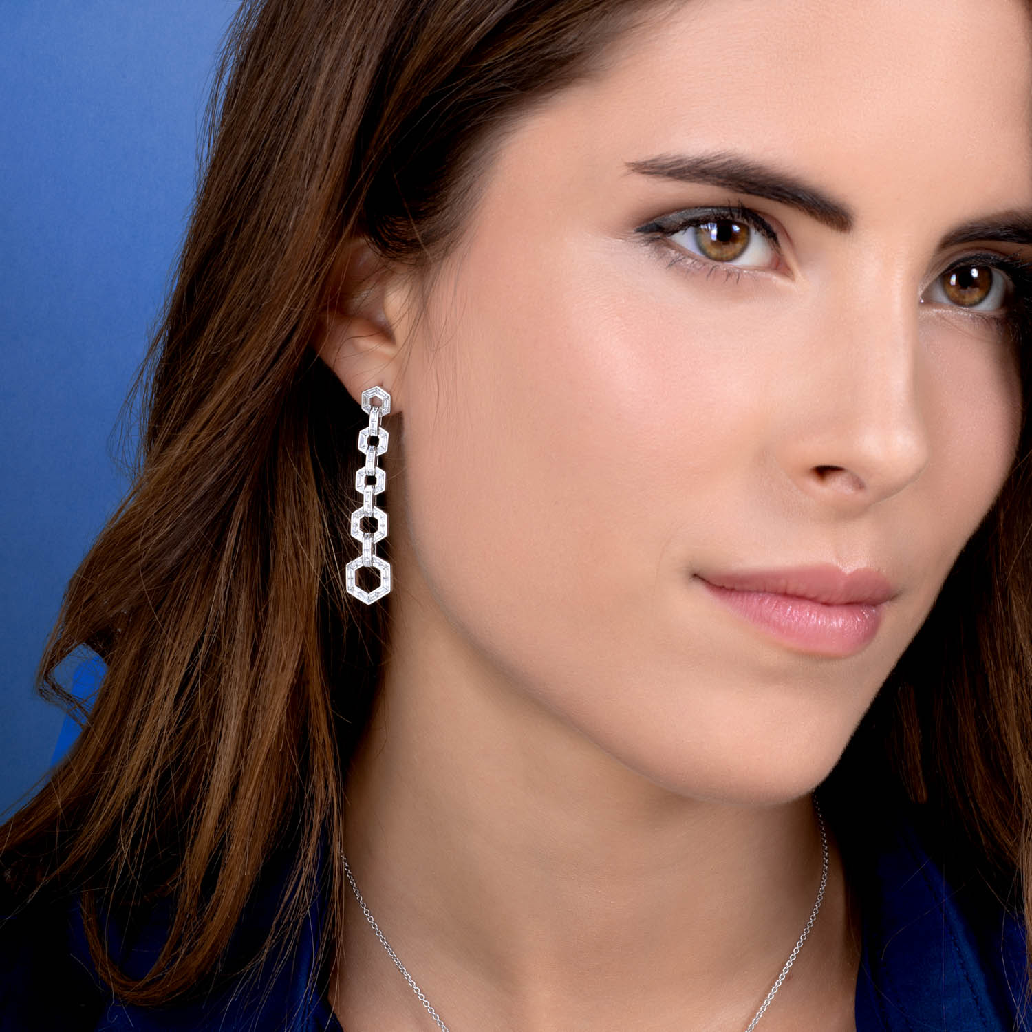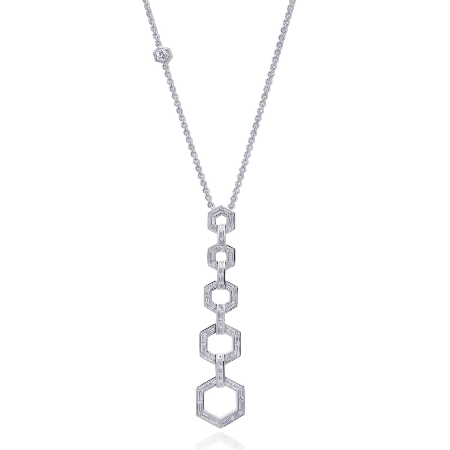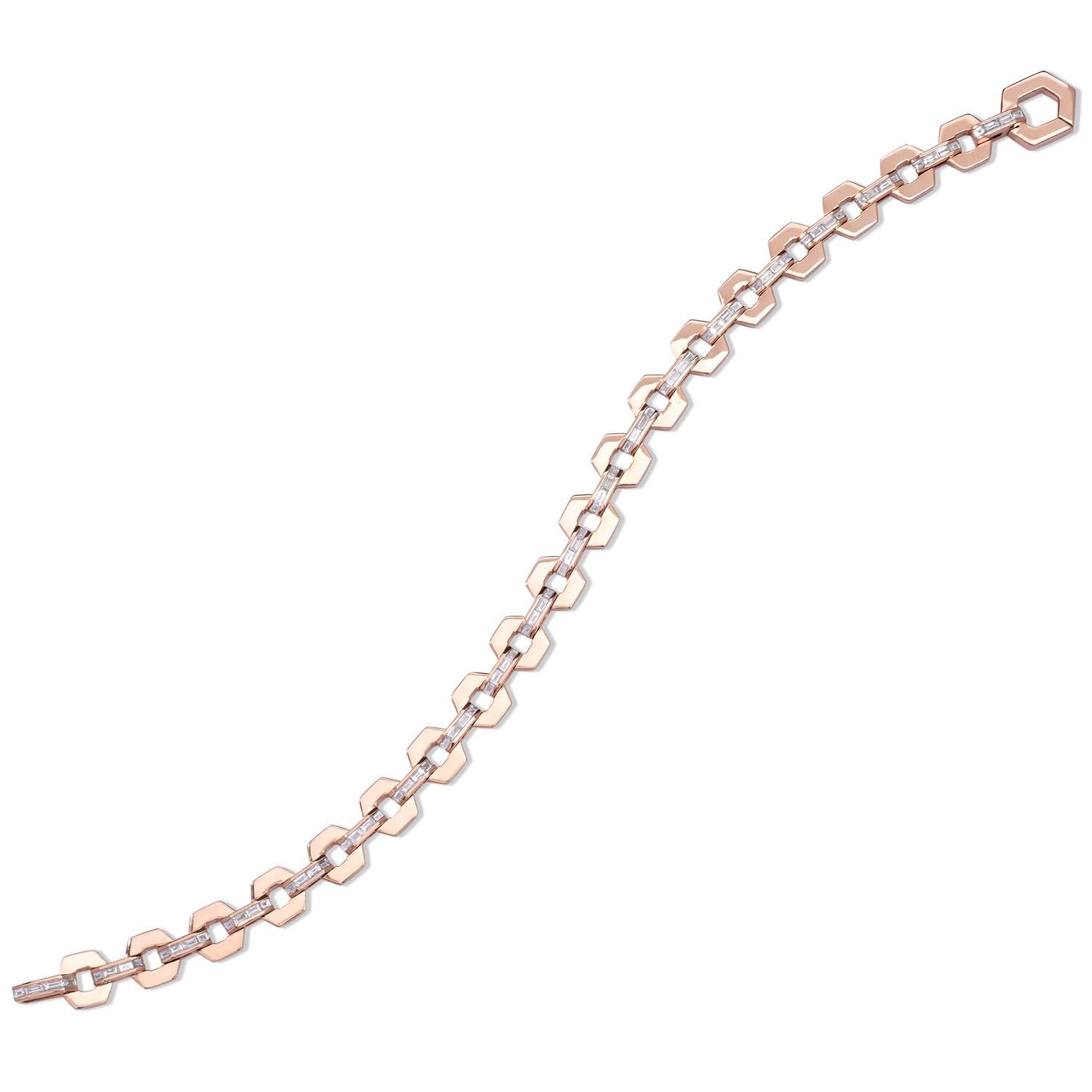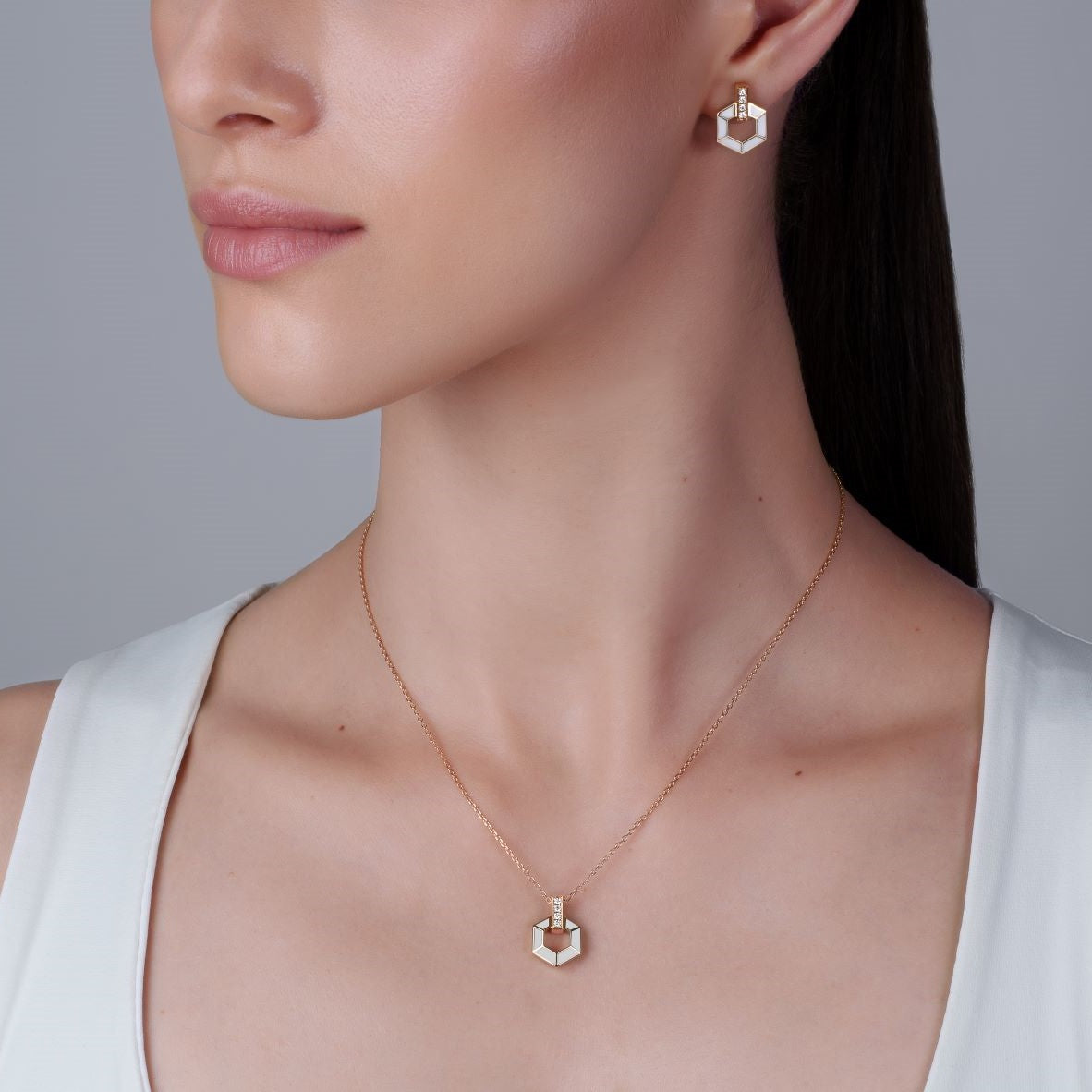 ステンツホルンのHoneyハニー・コレクションは、ミツバチの六角形モチーフを新たな高みへと導きます。ホワイトゴールドと温かみのあるローズゴールド製で、バゲットカットのダイヤモンドがあしらわれている。ビー・マイン・コレクションが進化するにつれ、ミツバチの神聖な構造がステンツホルンのデザインの焦点となりました。