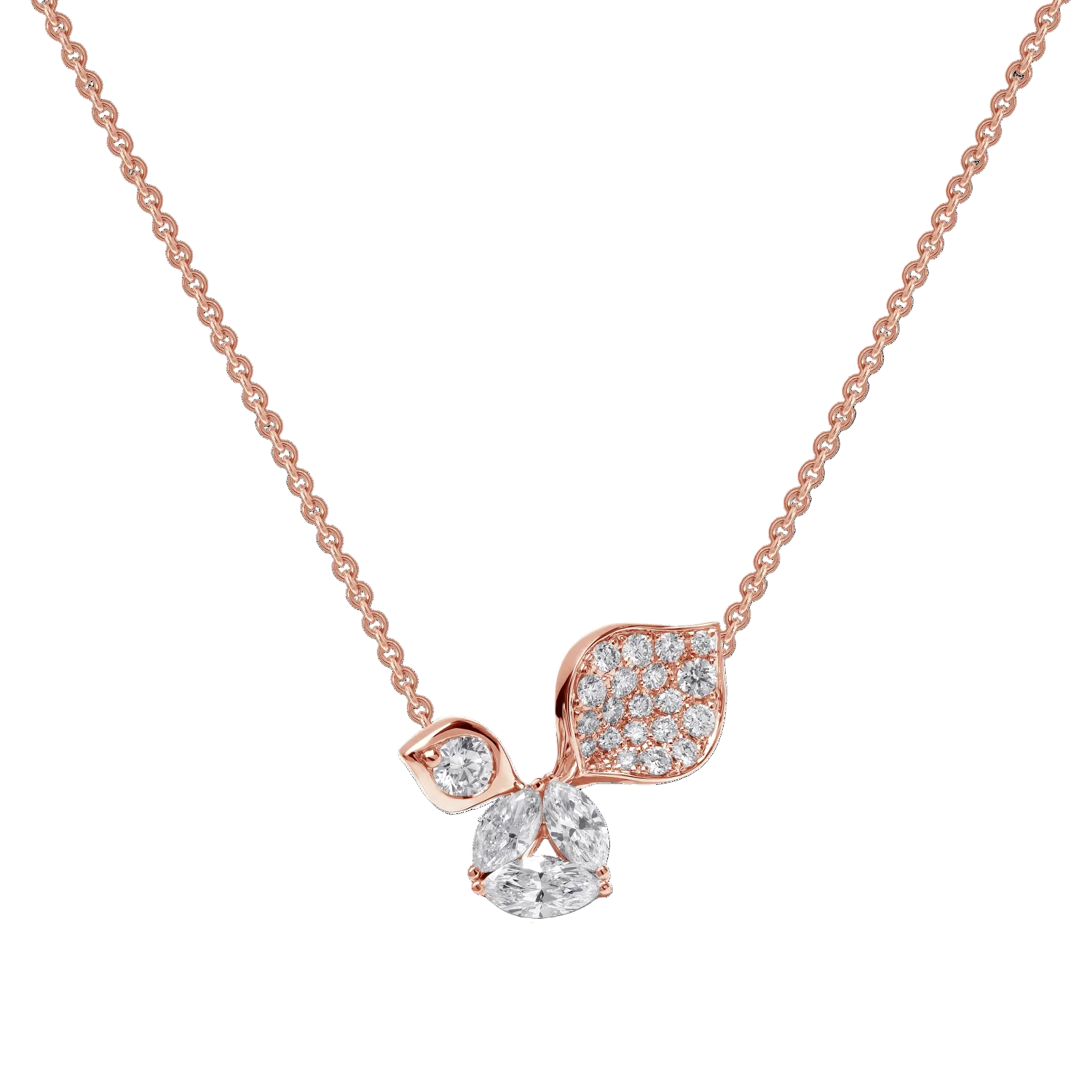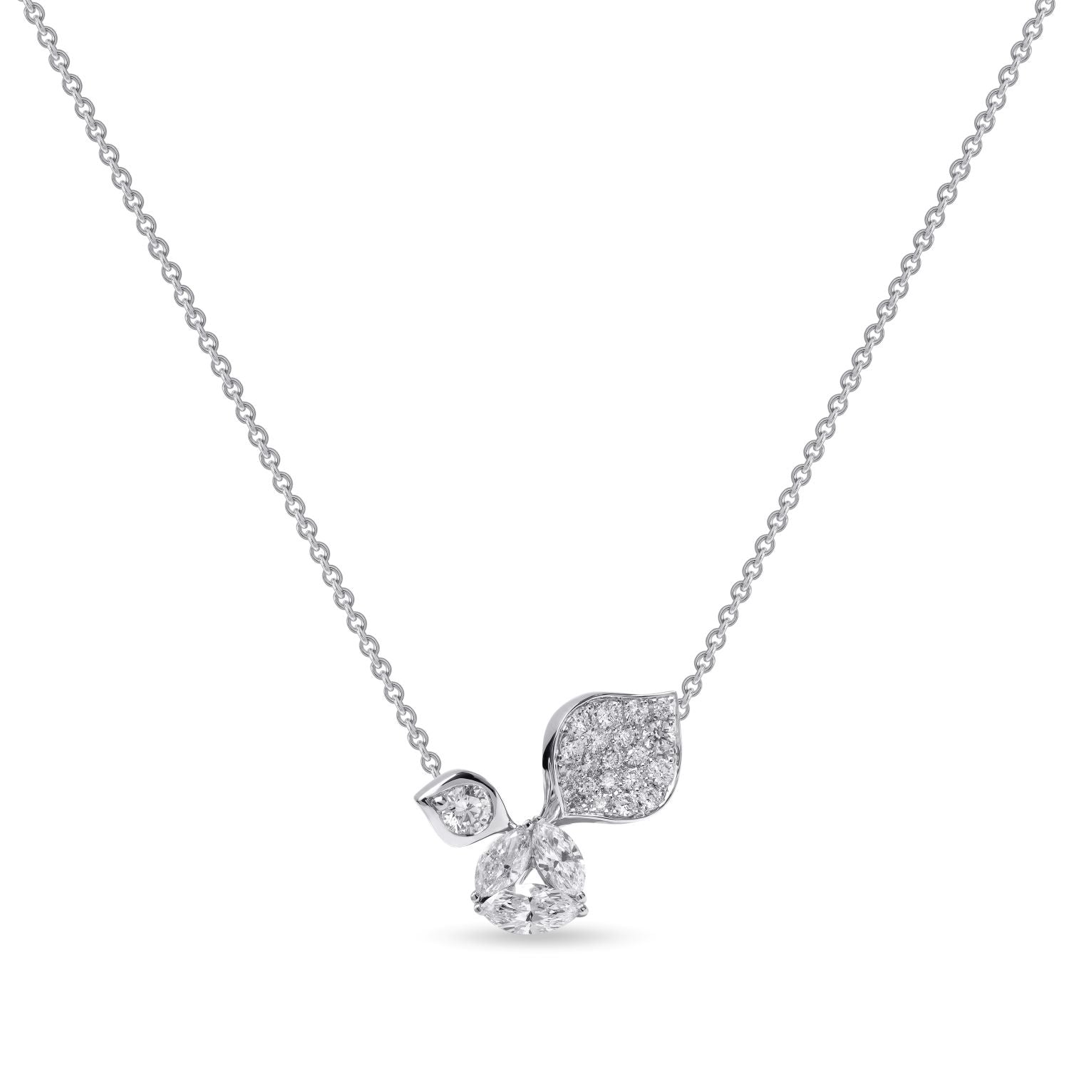 The À Fleur de Paris Necklace is a refined tribute to spring’s delicate beauty. The pendant features a gracefully curved petal paved with diamonds, accented by three marquise-cut diamonds at the centre. Suspended from an adjustable 18k gold chain, this necklace combines timeless charm with contemporary versatility.