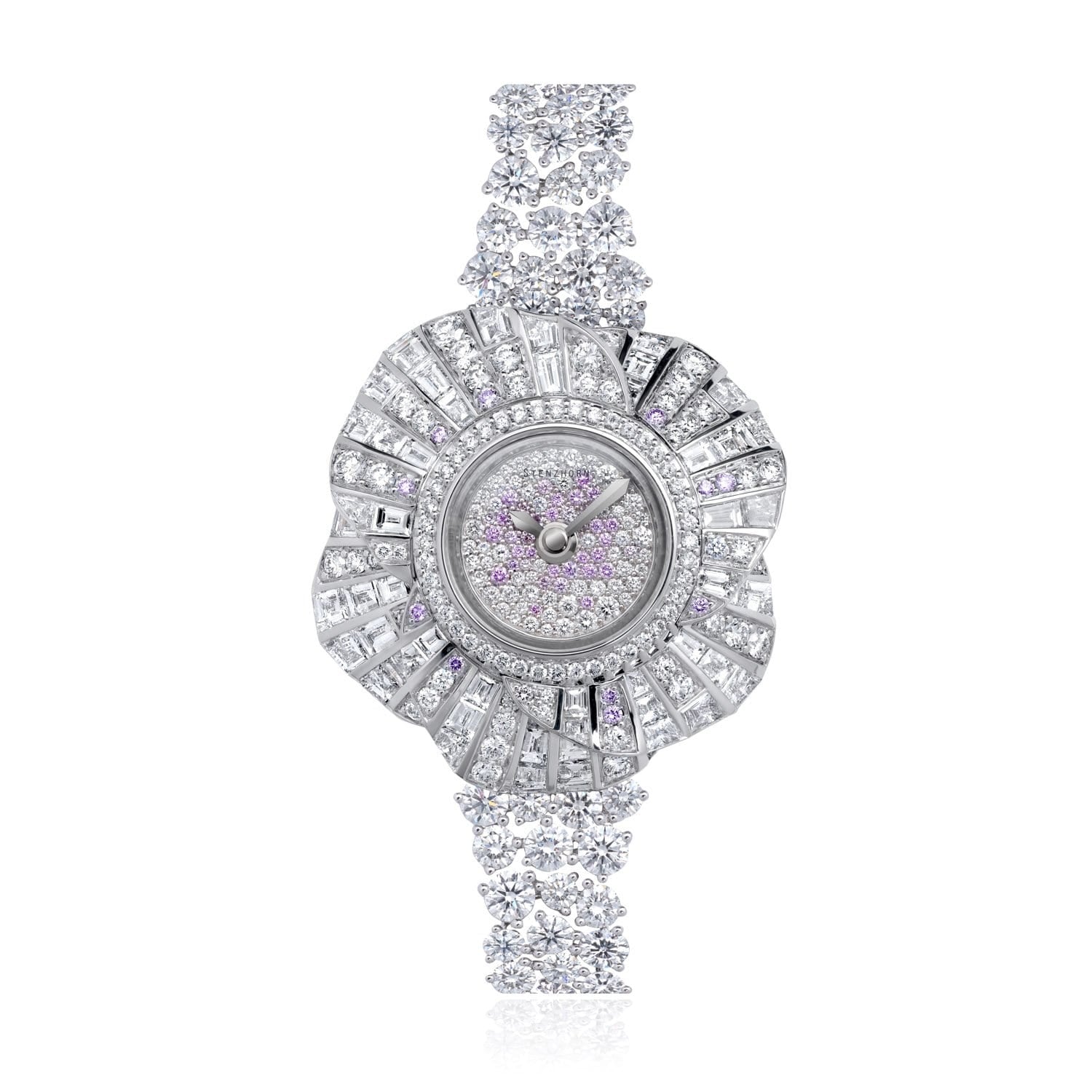 Crafted with meticulous attention to detail, the designer’s vision was to faithfully recreate the tiny veins carrying water into flower petals, through the use of channel setting technique.