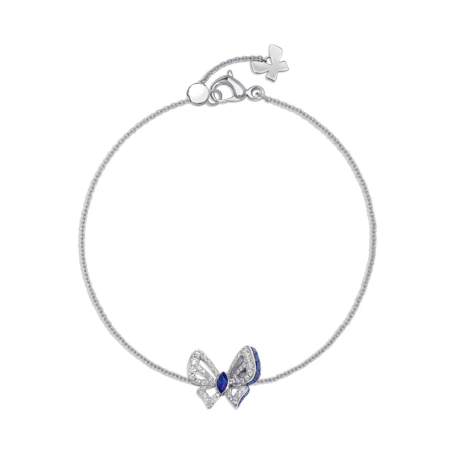 The butterfly’s body is crafted in vivid colour from a single marquise-cut gemstone.