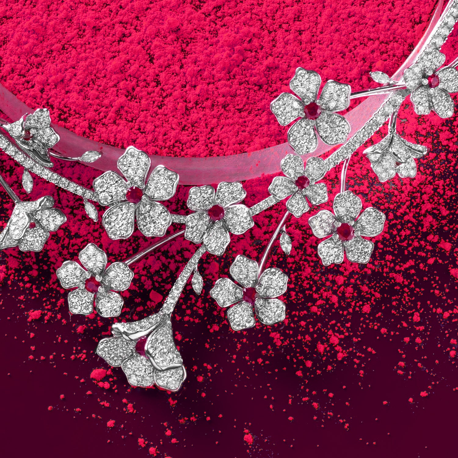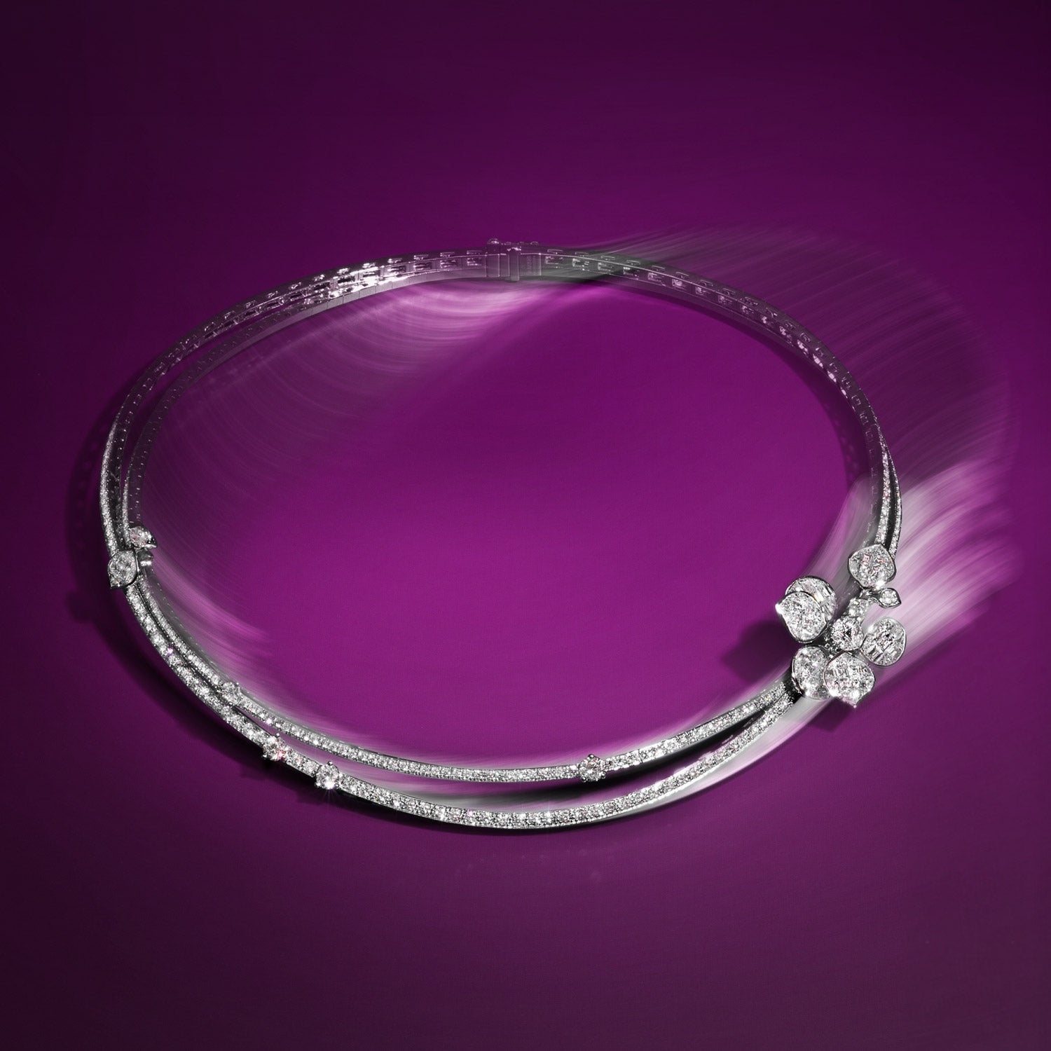 通过创新性地使用隐形镶嵌技术,Stenzhorn 创造出了表面柔和、弧度优美的珠宝作品,让人联想到娇嫩的花瓣。