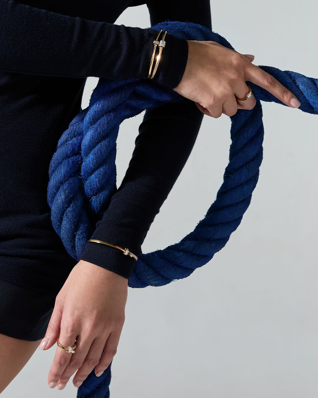 Notes 系列的第一个标志 "紧握"(Hold on Tight)取自水手的传统,他们将绳结作为团结和力量的象征。今天,我们将水手结的永恒优雅重新演绎为平衡、自爱和与自己联系的现代表达。